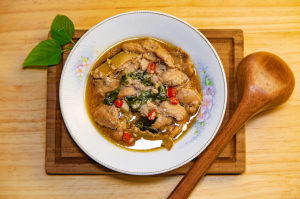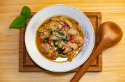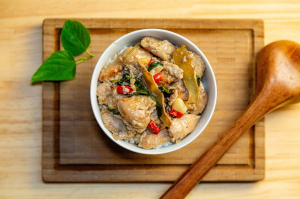 搭配米酒、麻油 、蒜粉、薑、辣椒、及九層塔等天然辛香料製作