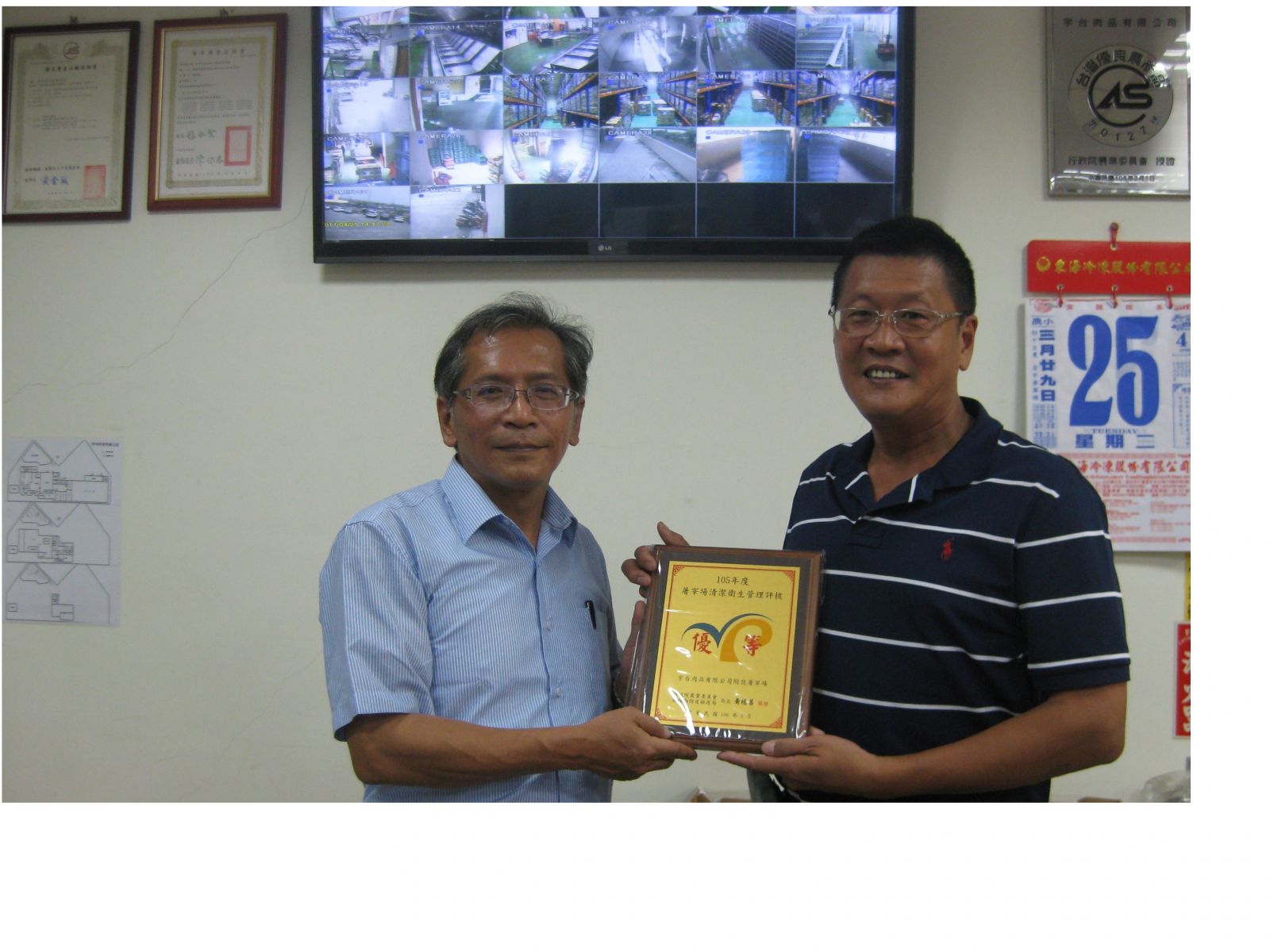 【105年度屠宰場清潔衛生管理評核優等獎】