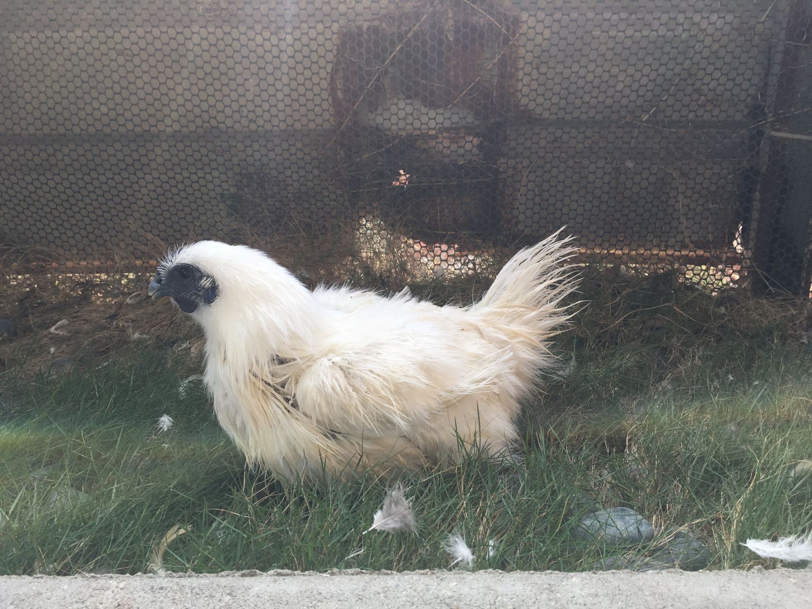 烏骨雞長大的樣子 是雪白色羽毛 黝黑的皮膚 藍耳朵 玫瑰冠