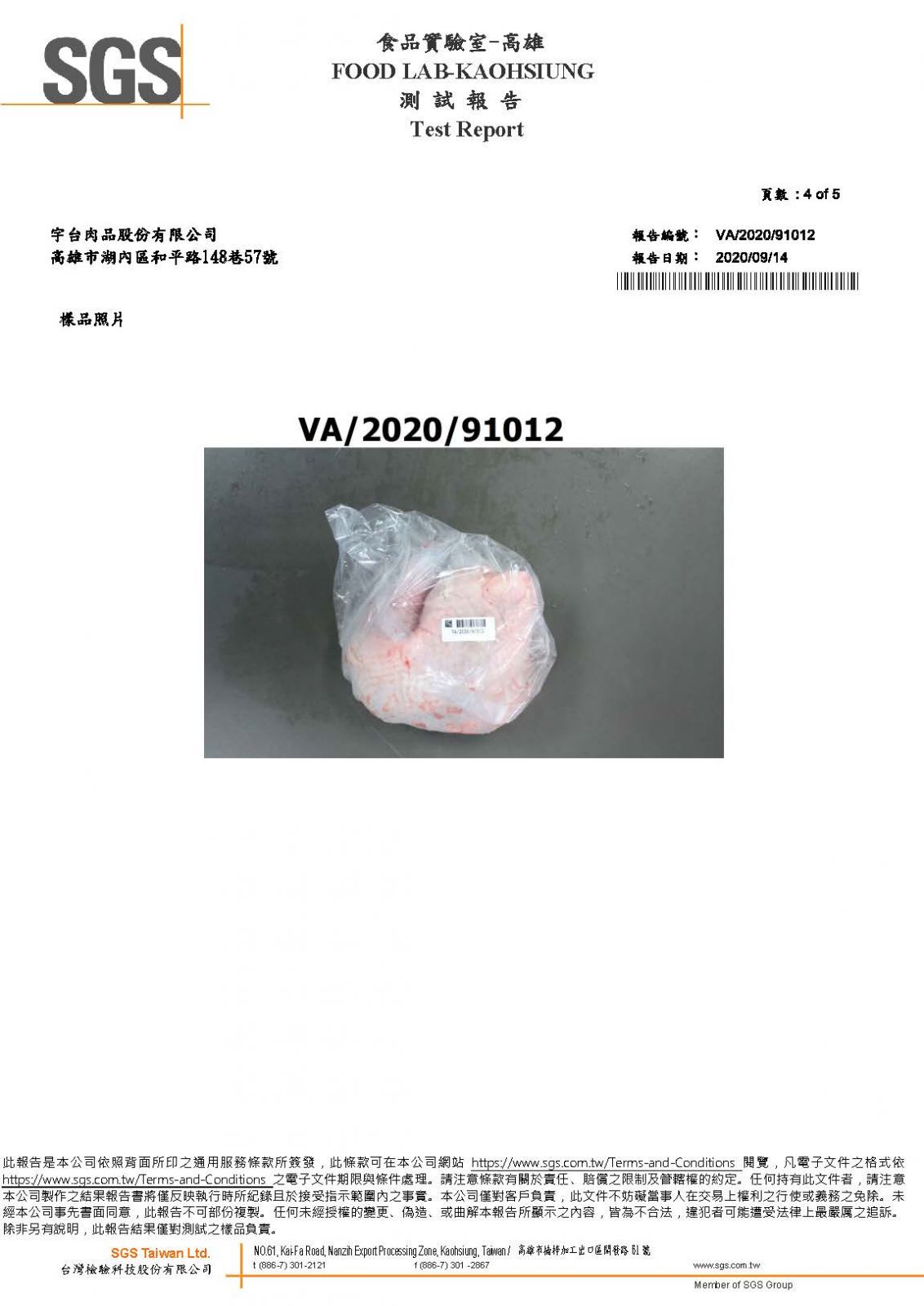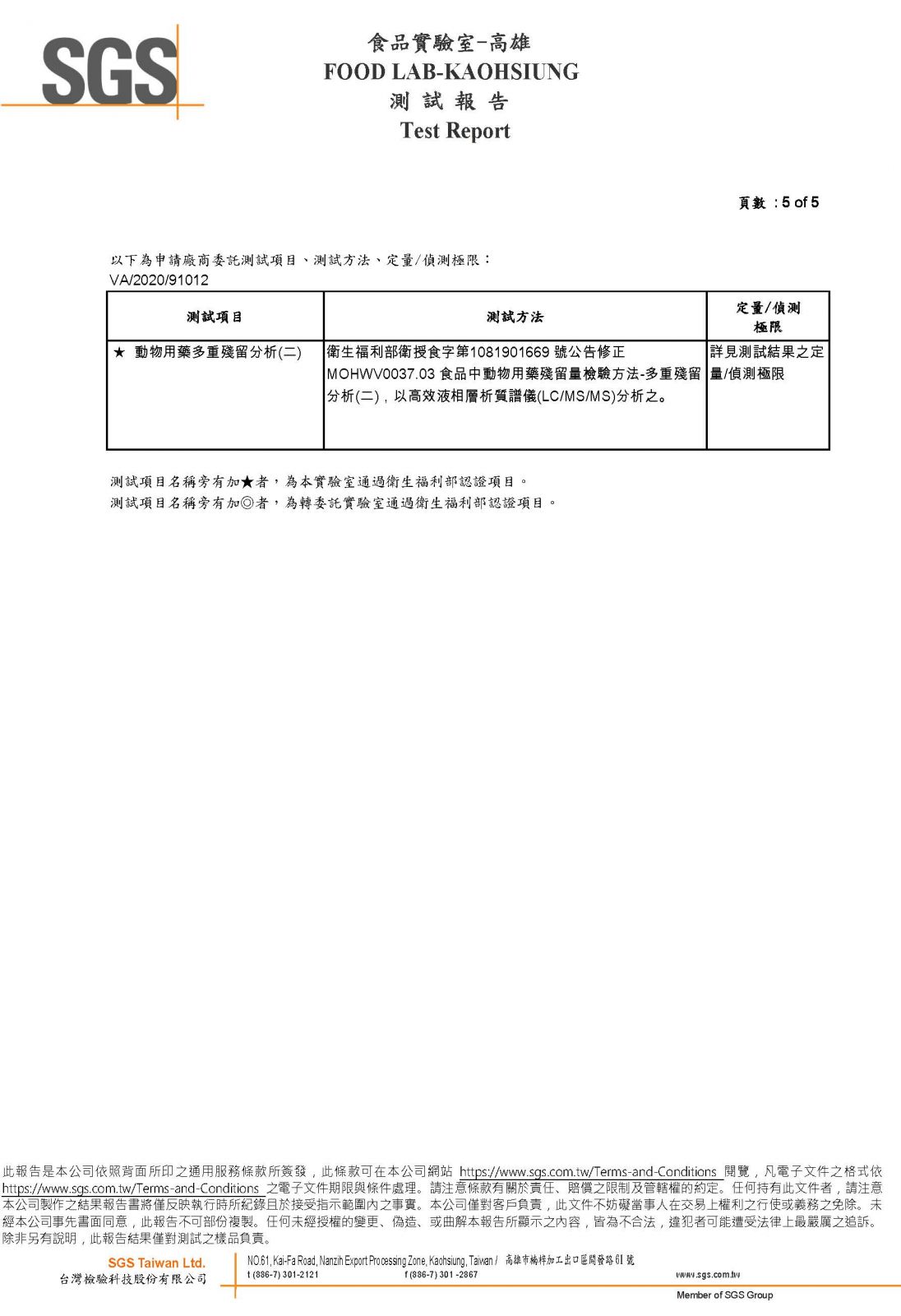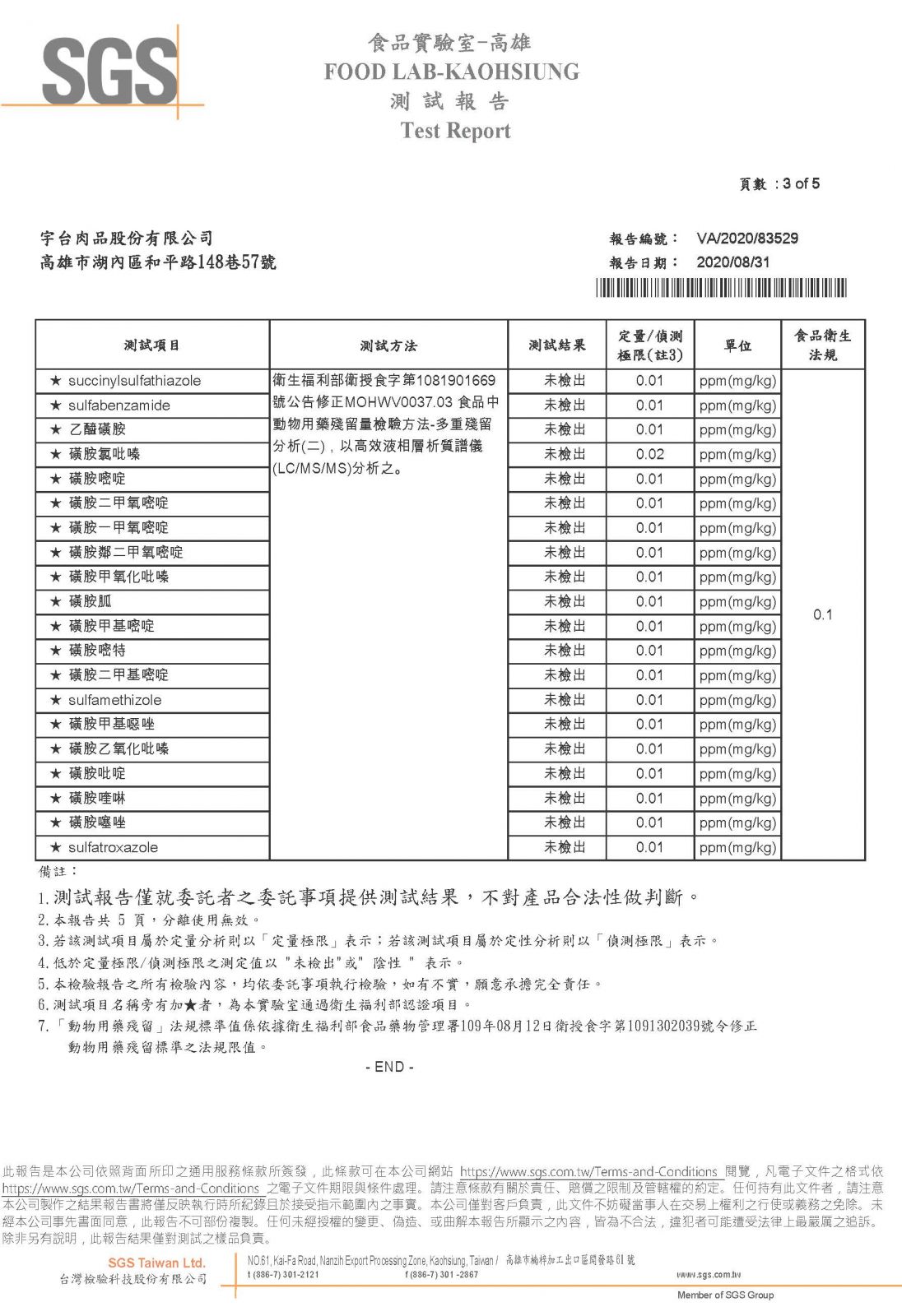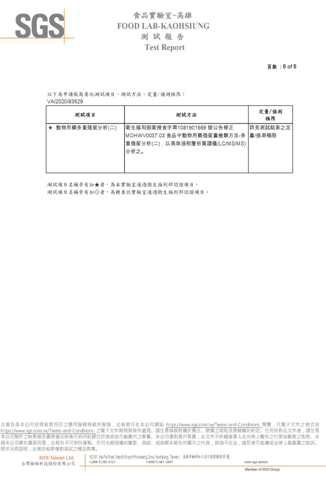 冷凍土雞 藥物殘留未檢出    2020.09月SGS檢驗報告
